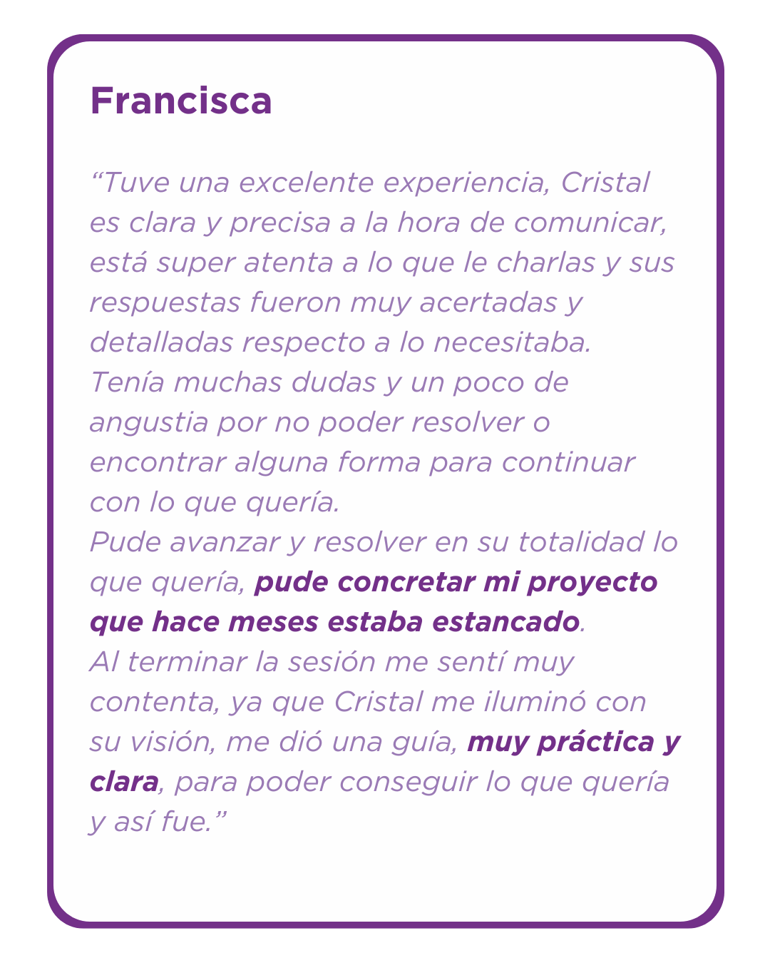 Soy Cristal Pérez, Programadora Neurolingüística, y voy a guiarte en este fantástico camino de autoconocimiento y desarrollo personal.